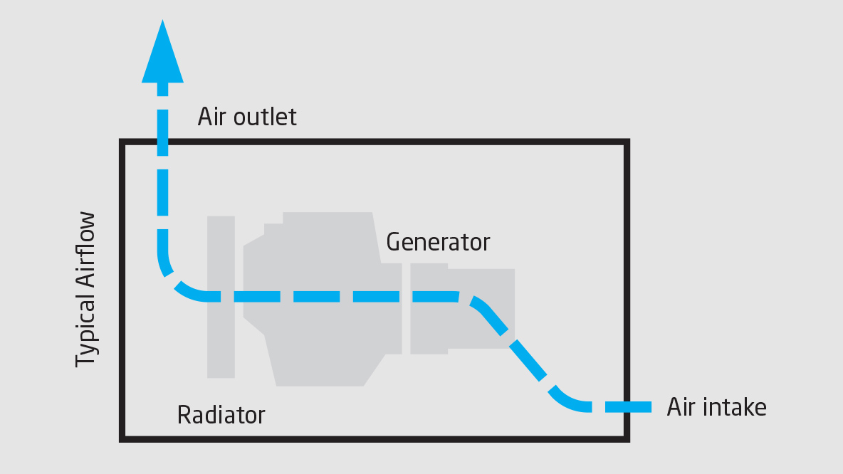 With conventional sound reduction, cooling air has a virtually straight paththrough the unit.